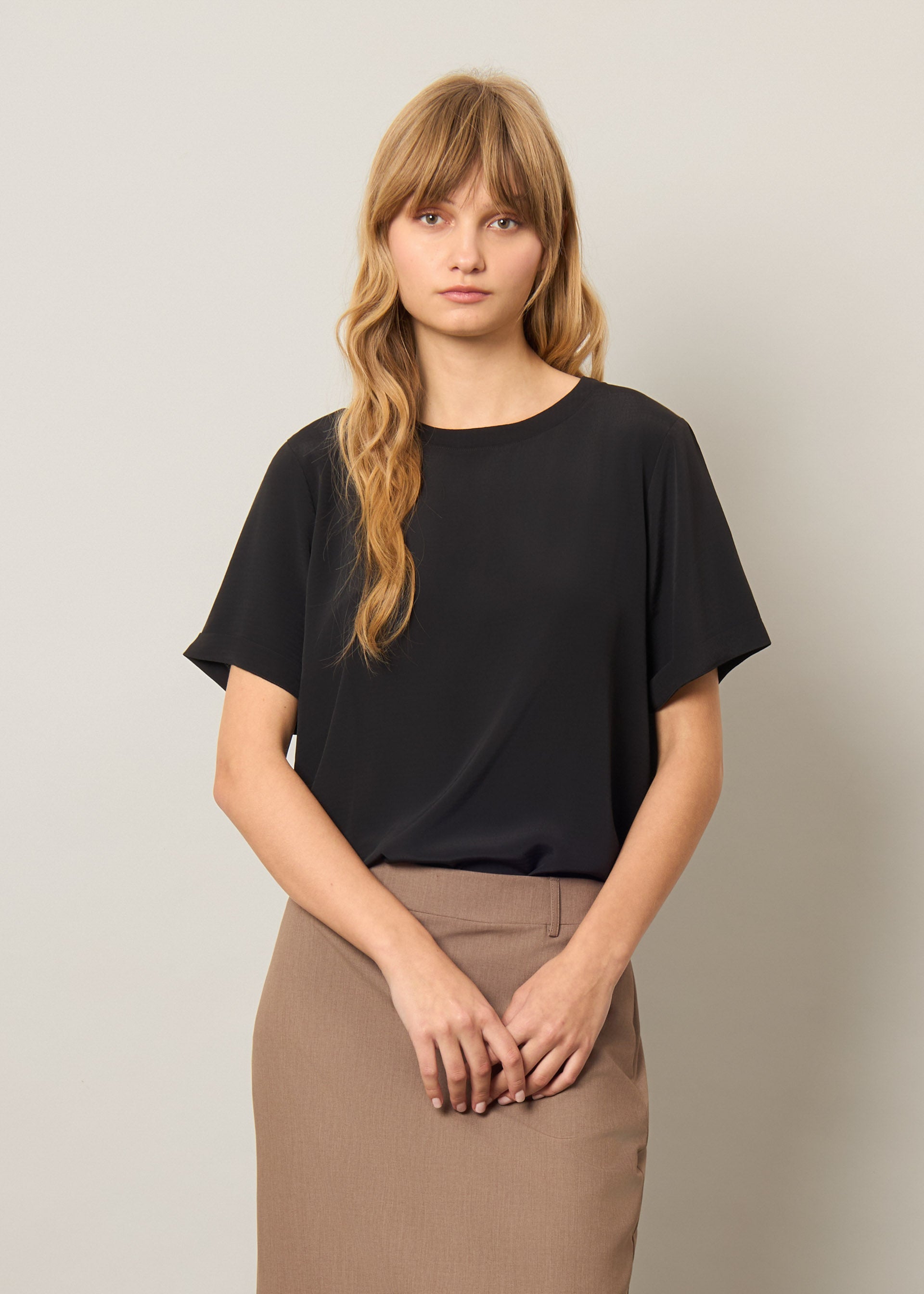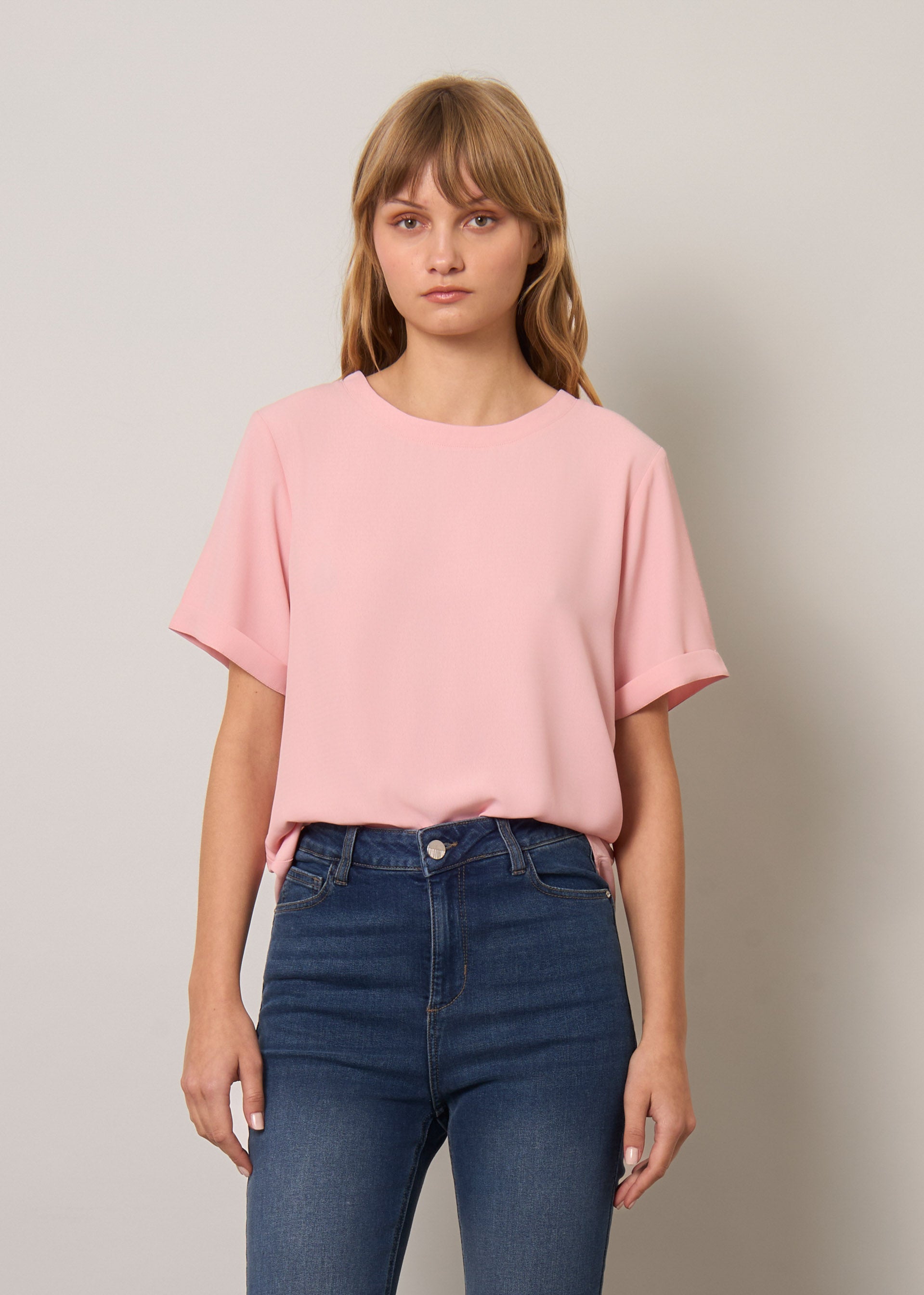Blusa girocollo in crepe