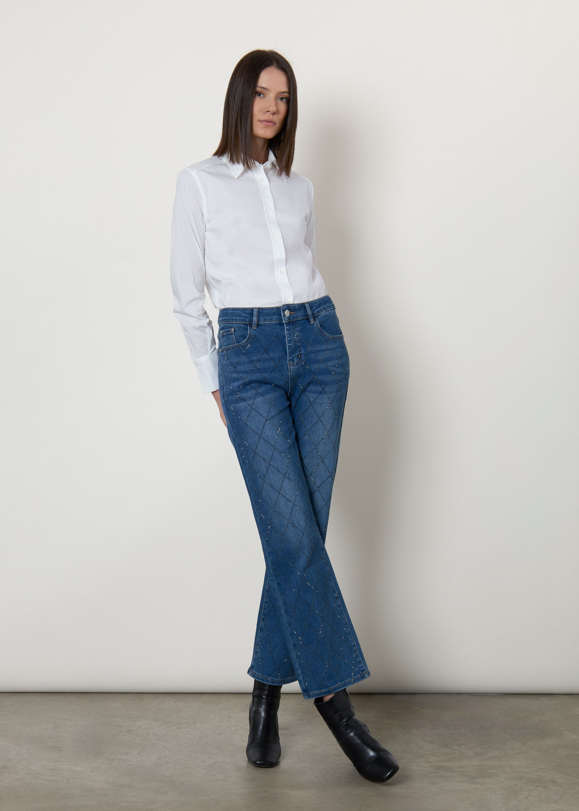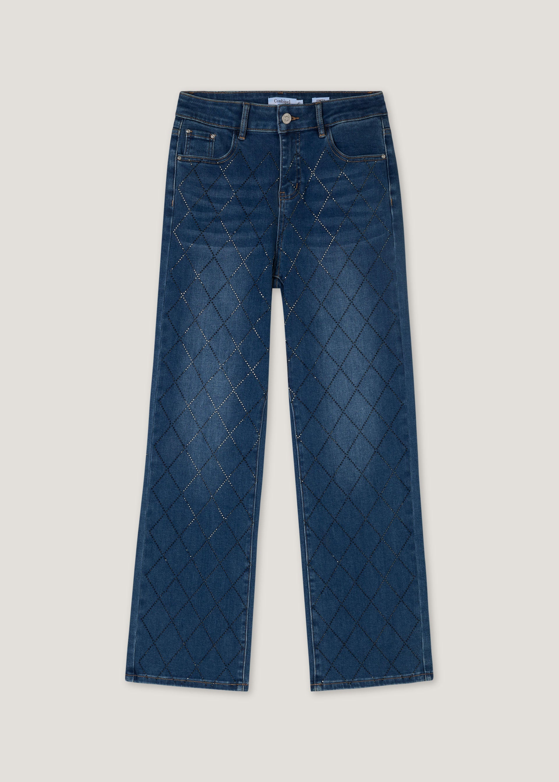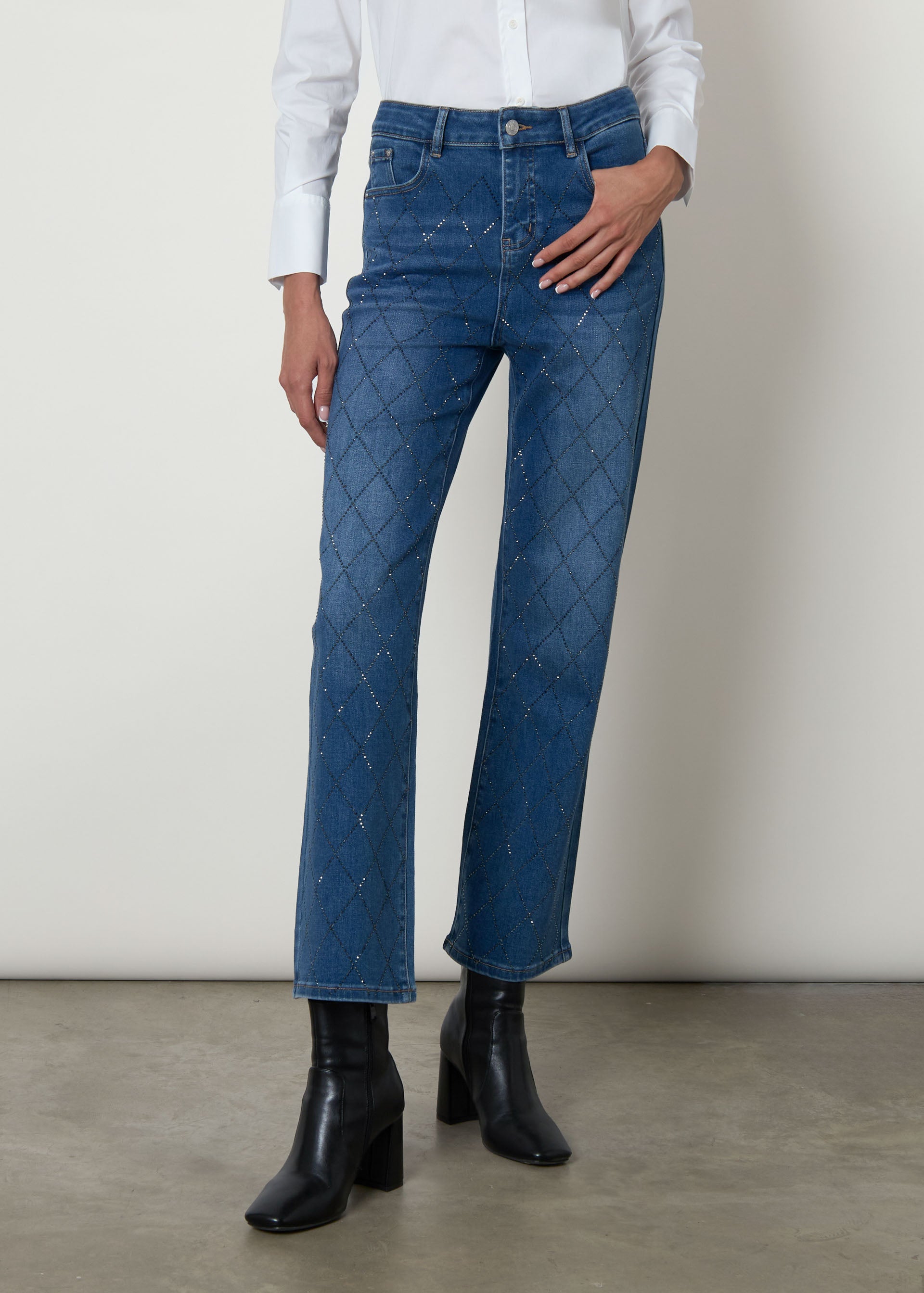 Jeans straight con strass