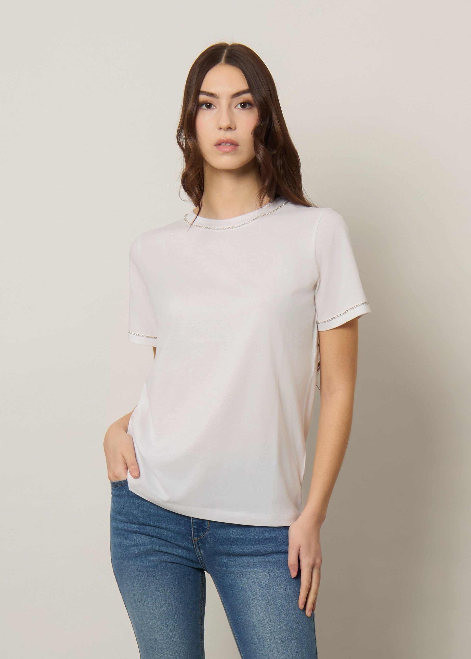 T-shirt in cotone con strass