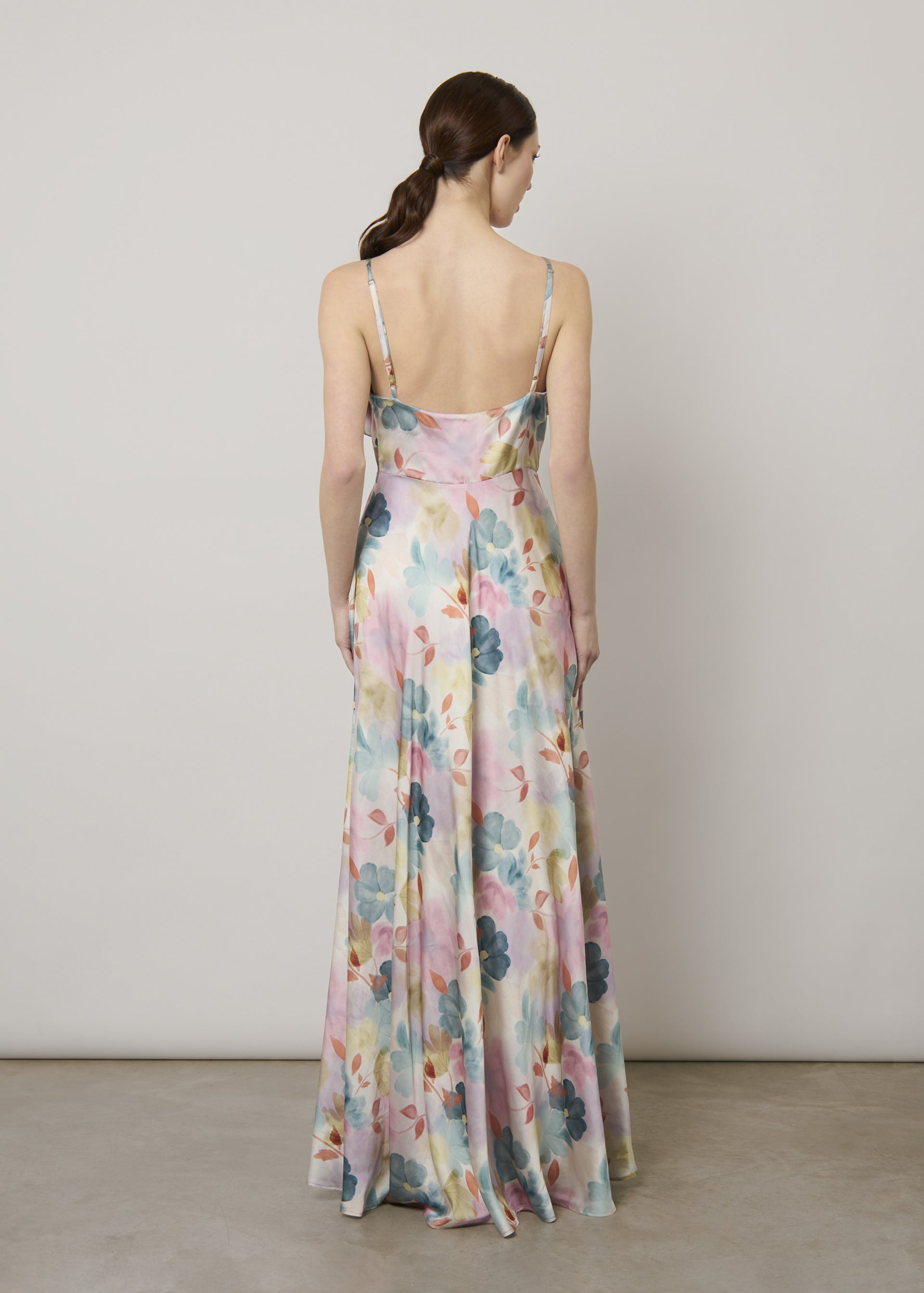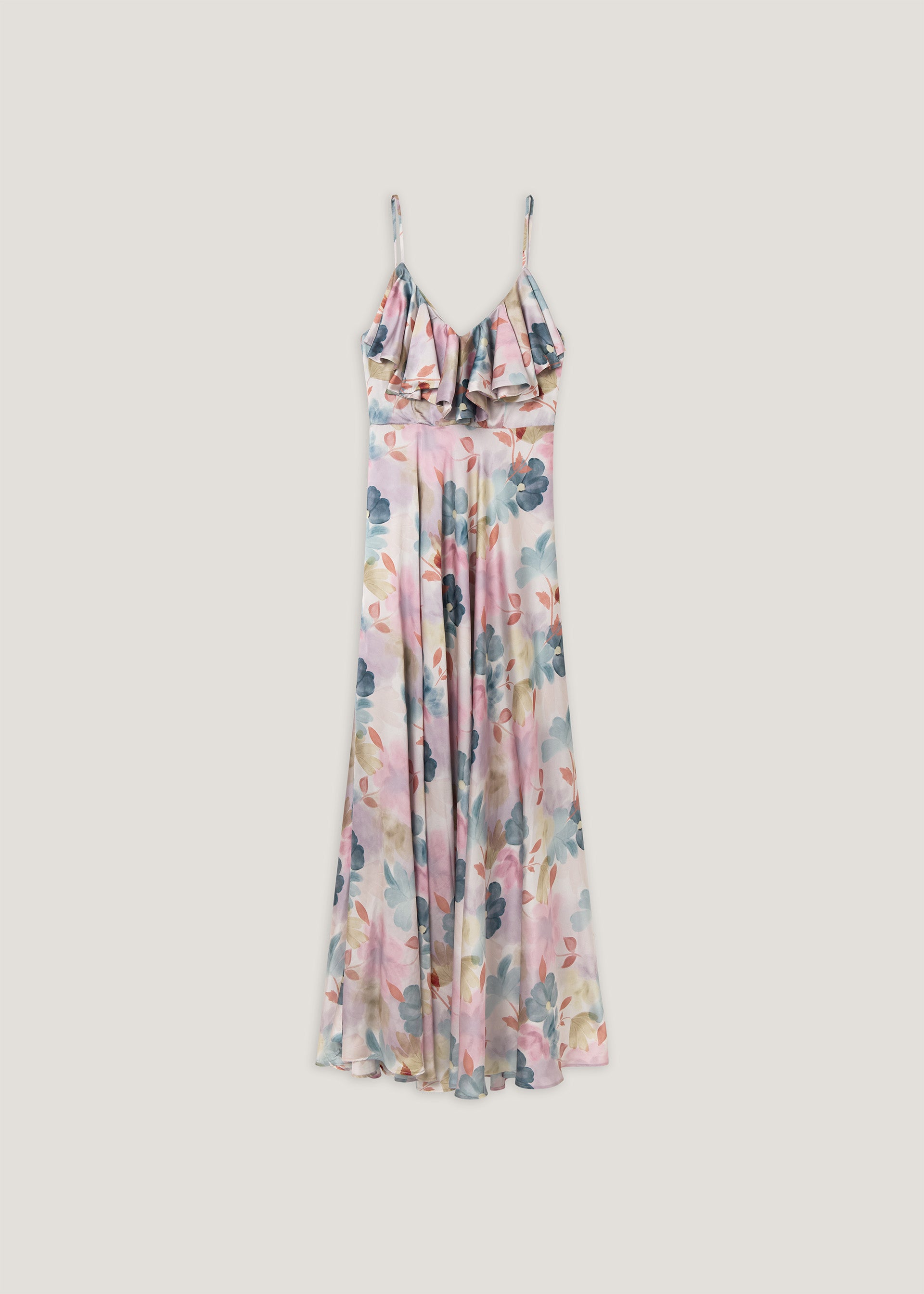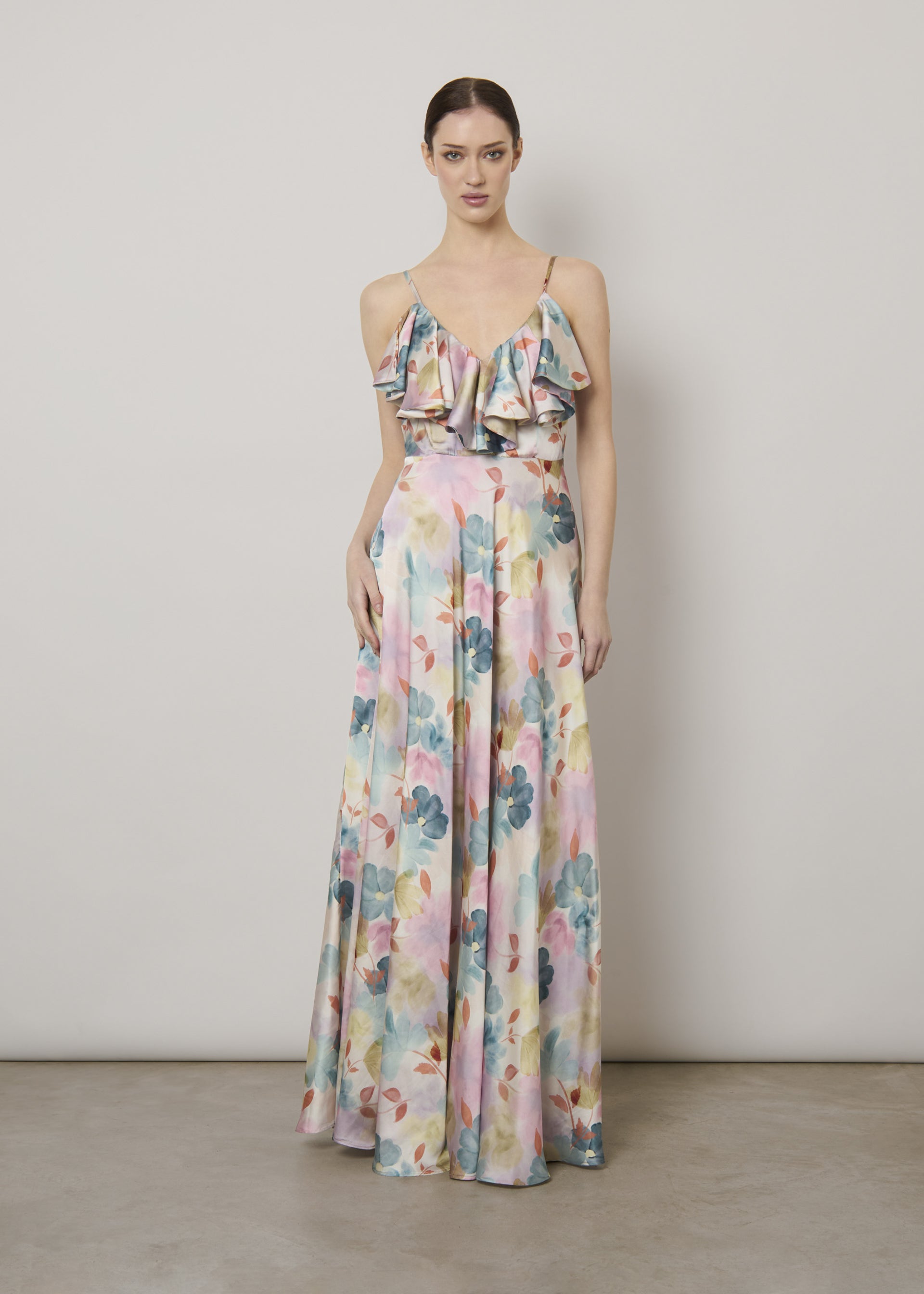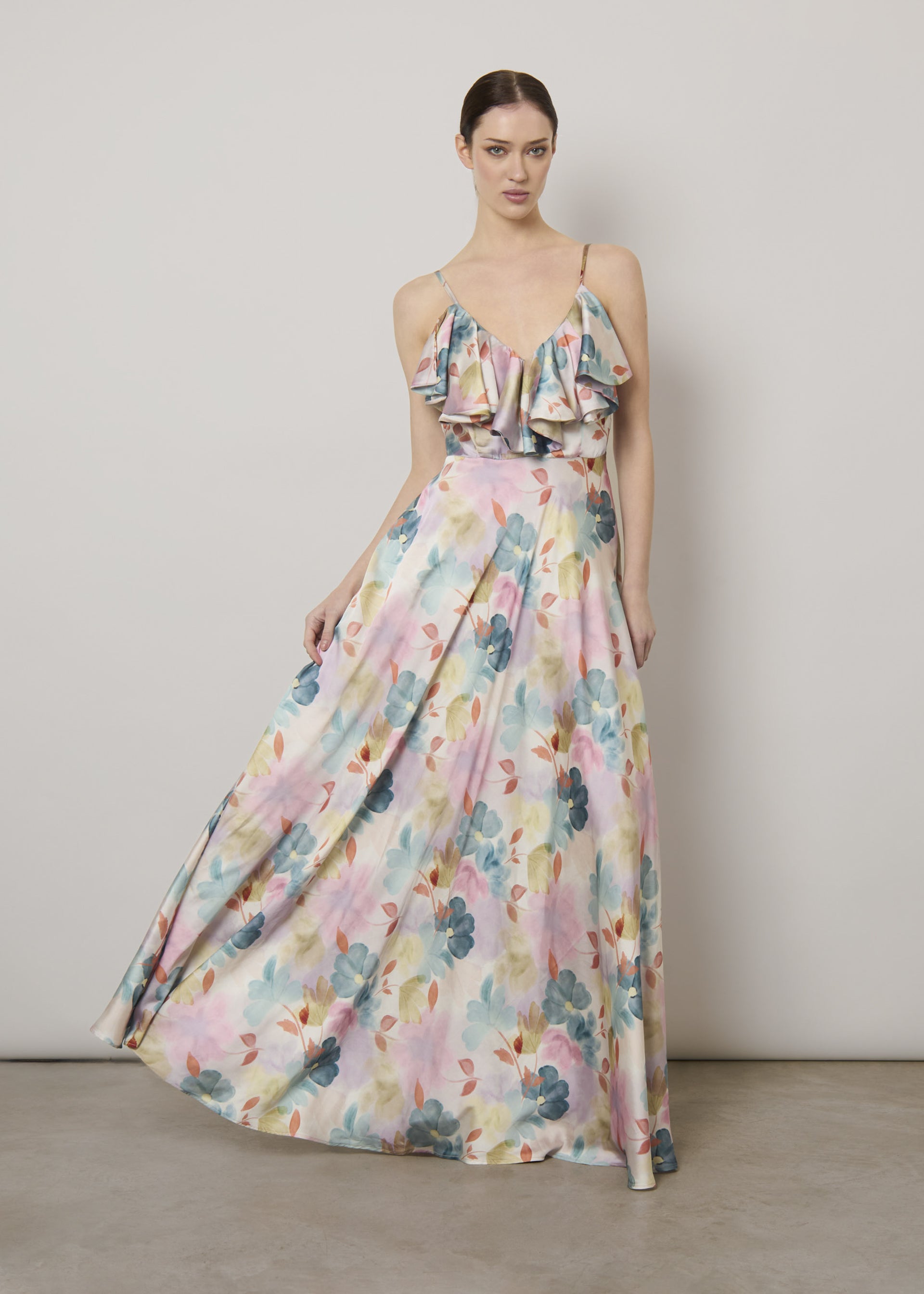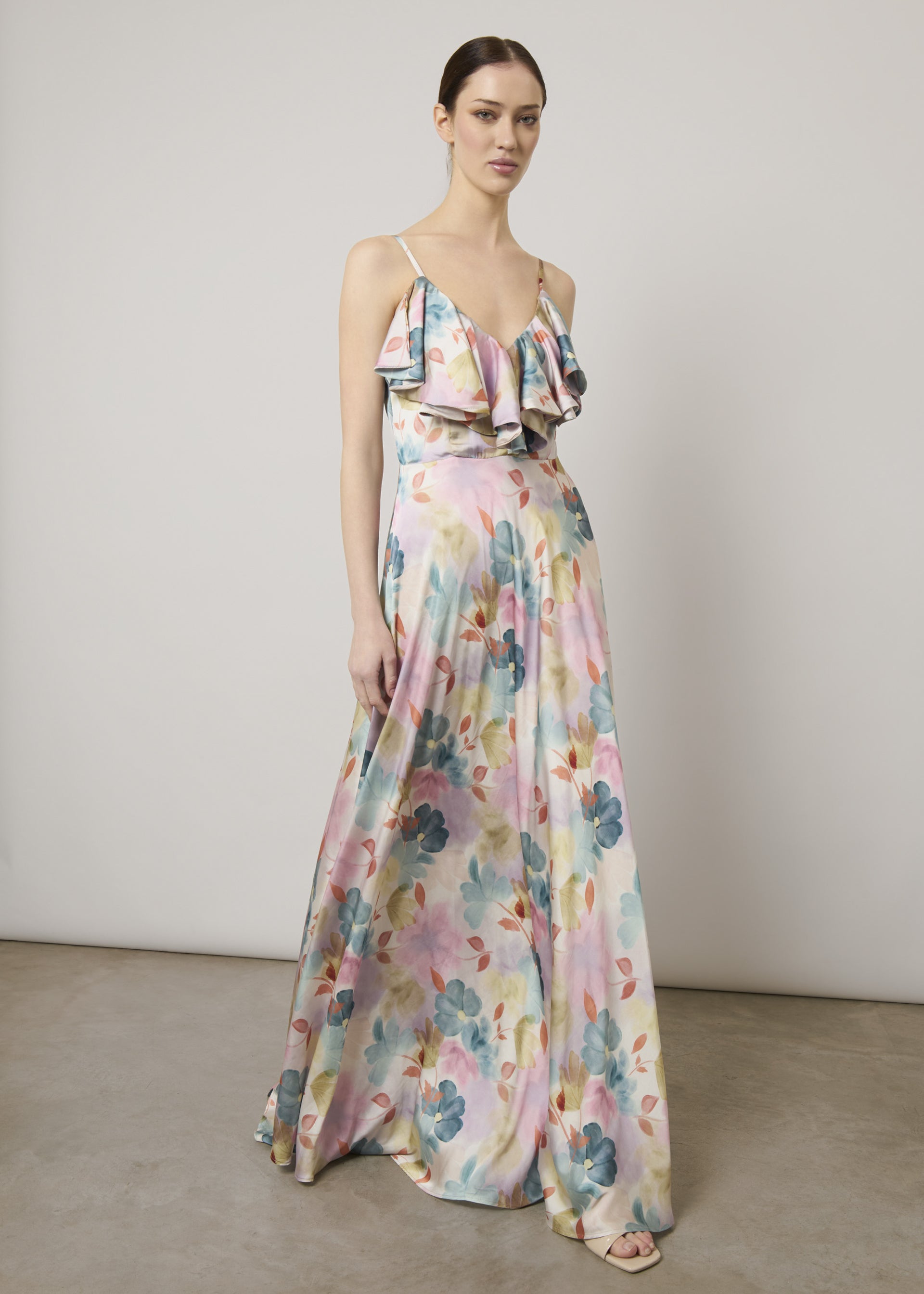 Abito lungo in raso stampato