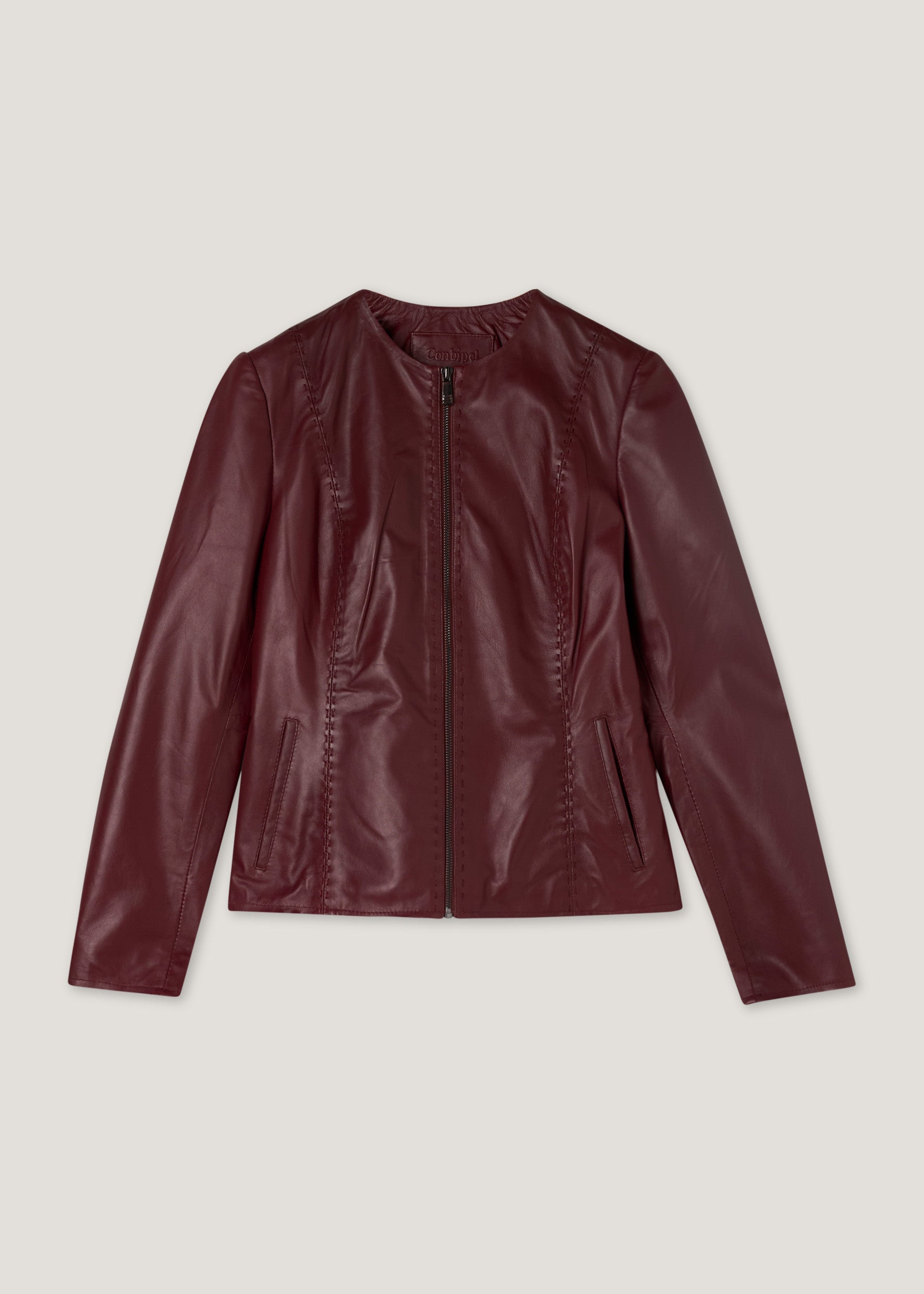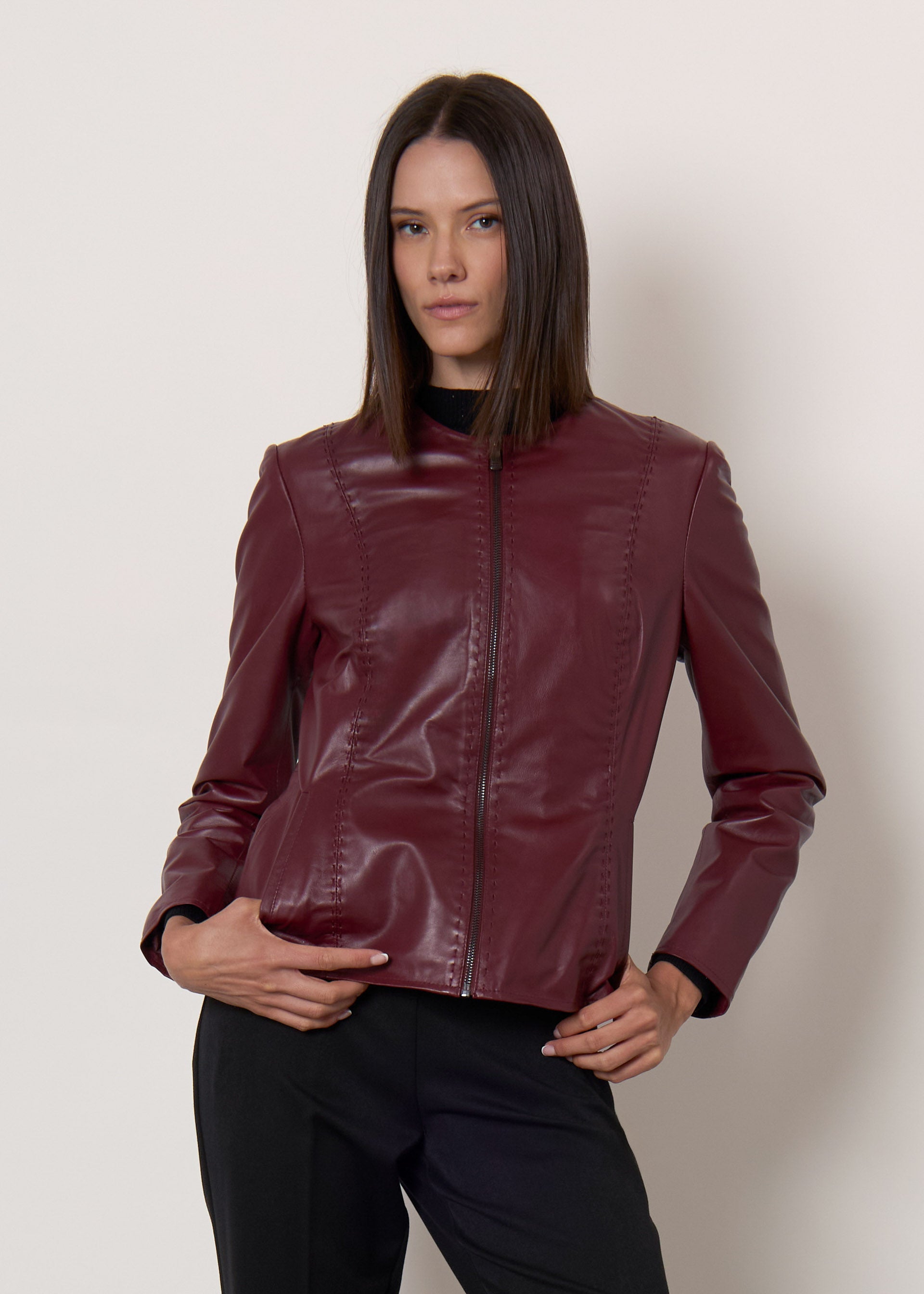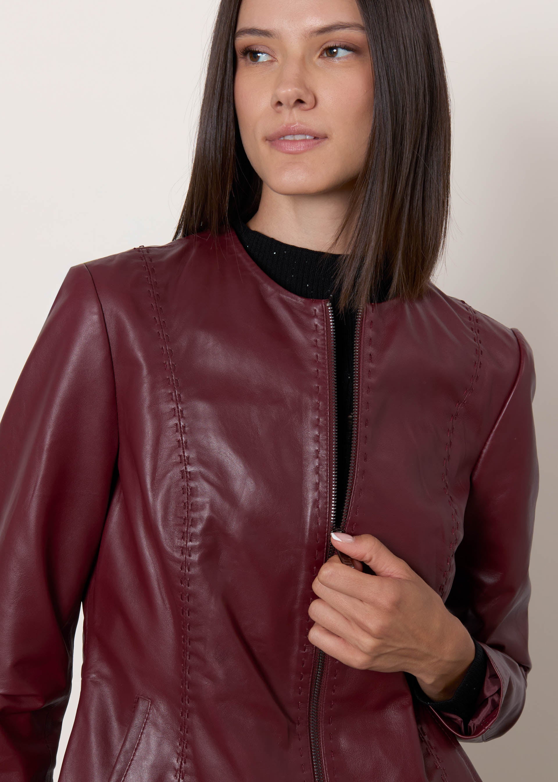 Giacca in pelle senza collo