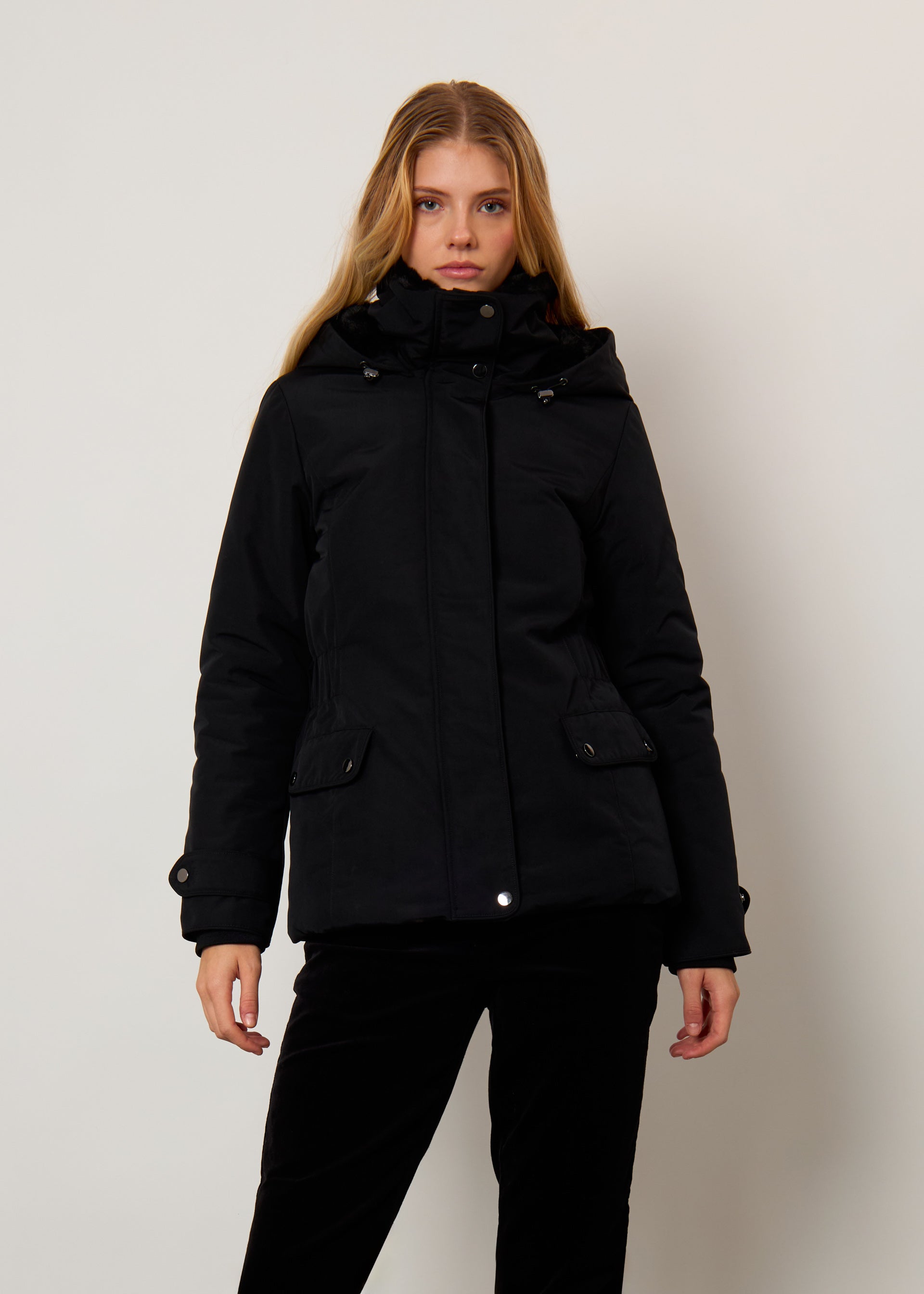 ∙ Due tasche a falda con bottoni automatici