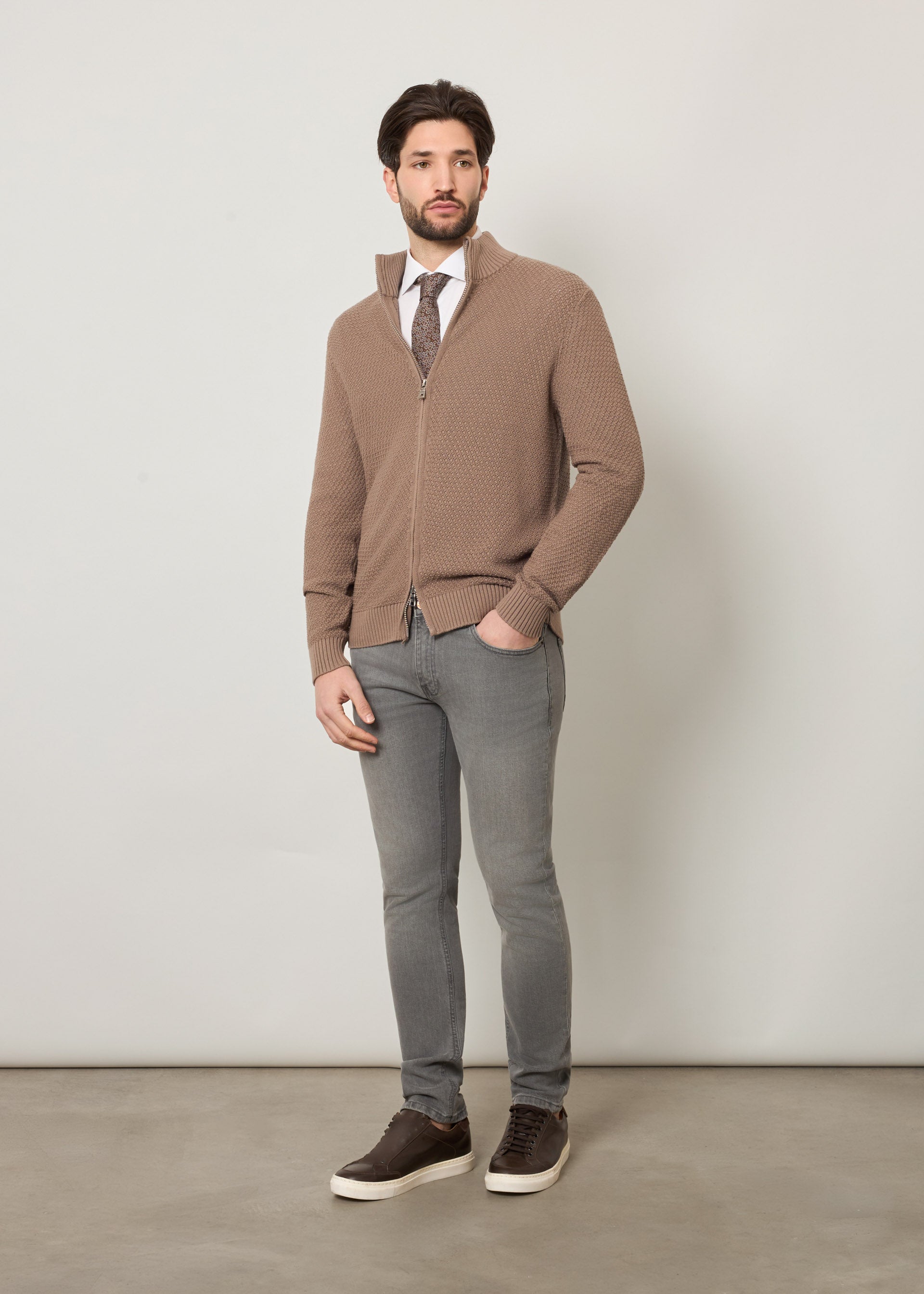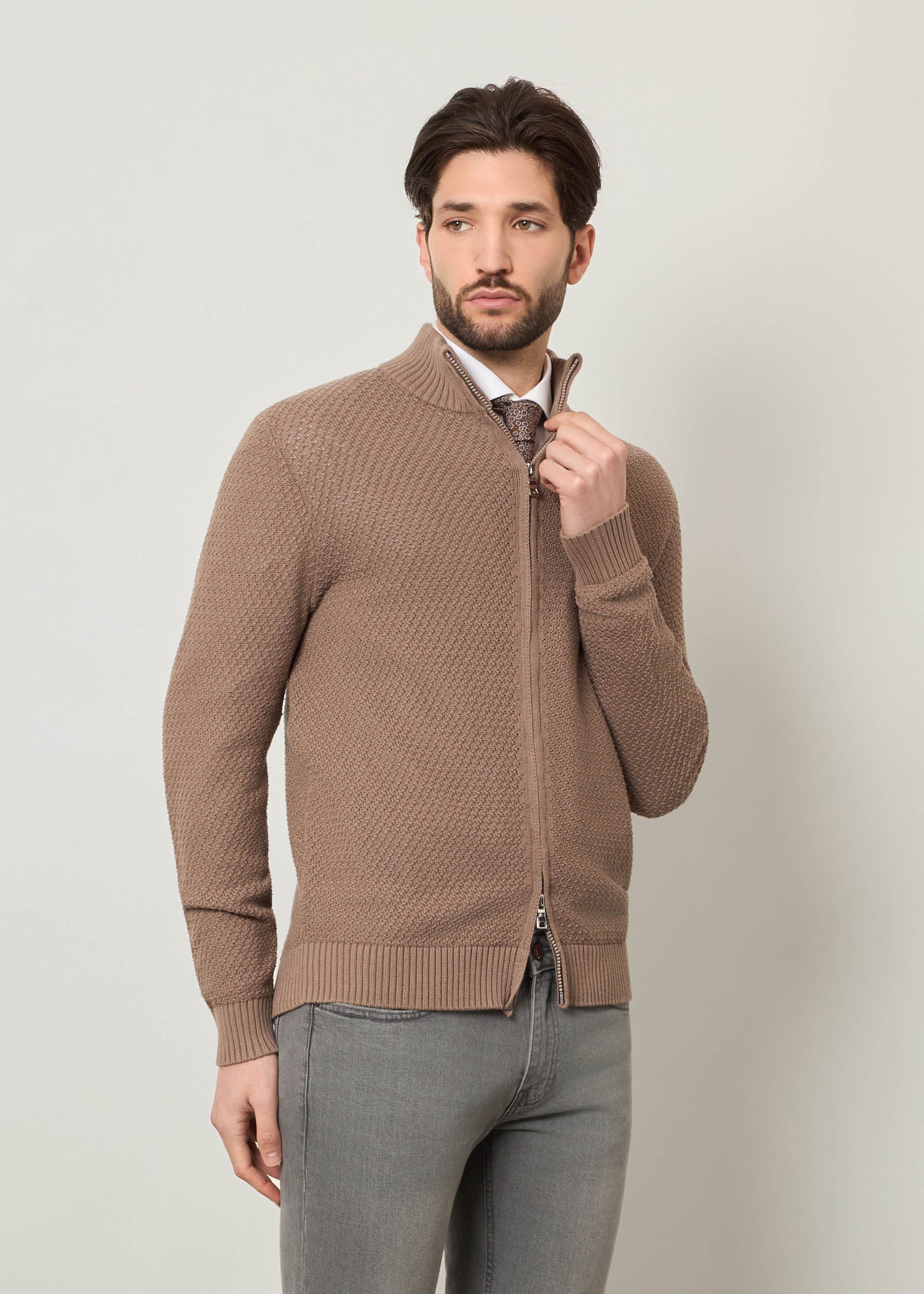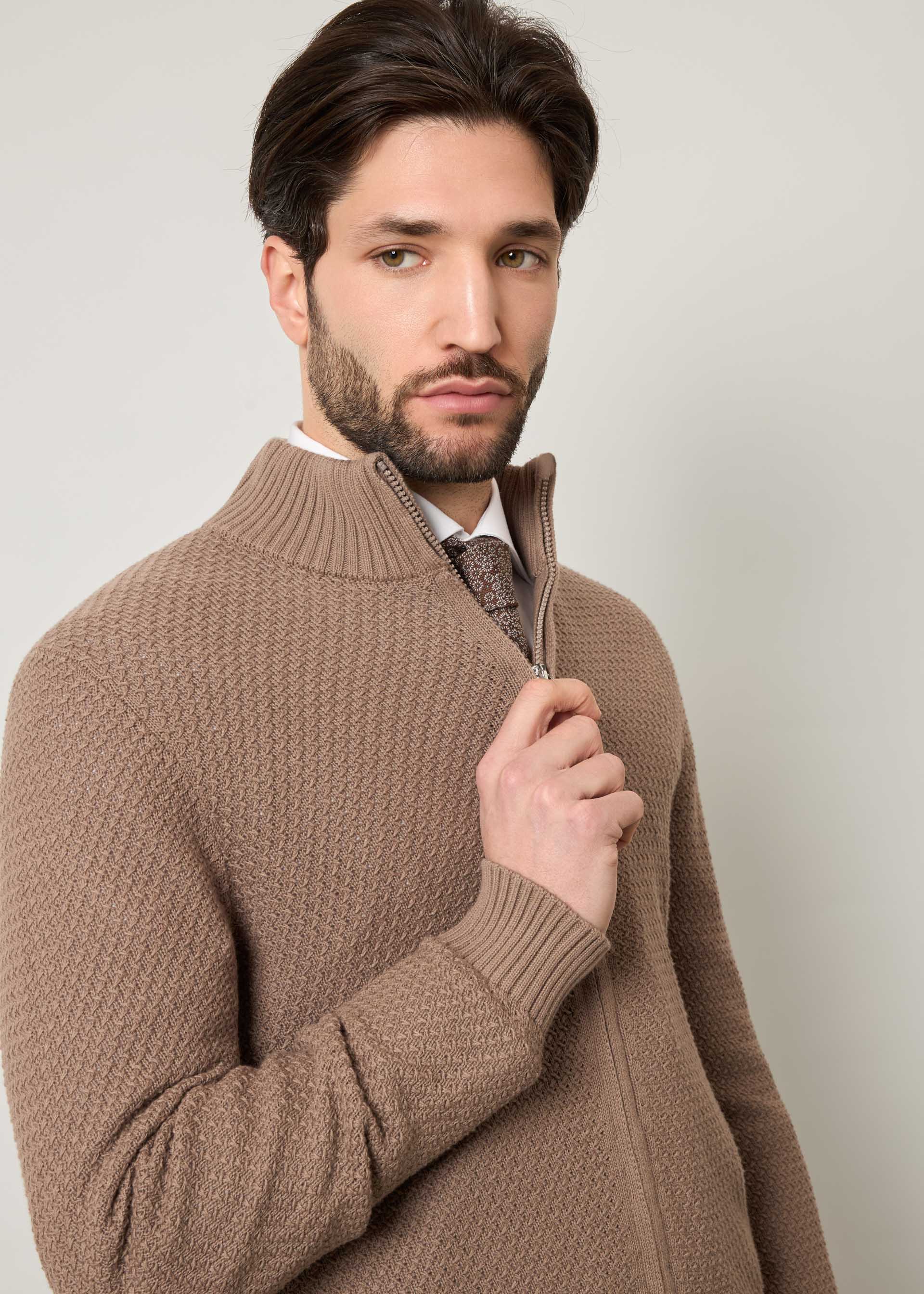 Cardigan con zip in puro cotone